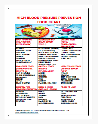 Organized into clear, intuitive categories, the chart makes it simple to identify which foods help reduce sodium’s impact, relax blood vessels, improve circulation, and support long‑term heart health. Each section emphasizes whole, minimally processed foods that fit seamlessly into everyday meals, meal prep routines, and lifestyle coaching programs.